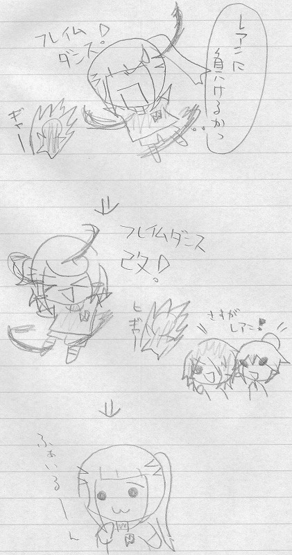 魔界軍団倒しましたー! 思ったよりも苦戦はしなかったです。 とりあえず一目惚れしたベリアルと トレード要員のメフィスト仲間にしました。 バトル無しで仲間になってくれたベリアルに萌えた。 本当に慣れてくると楽しいで・・す・・・ ゲネルくんはガチで色んな物になりますよ 妹のおかげで癒し系キャラが確立しつつあるんですが やっぱこの顔はダメだ、ネタに走ってしまう・・・! 下の色々混ざってるヤツの元ネタは ピカチュー(でっていう)のAAです。 名前の所はバーンにしようと思ったんですが どうみても効果音になったのでやめました。 |